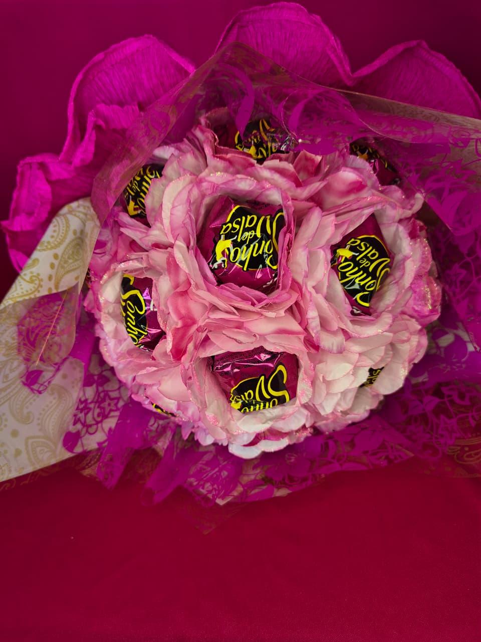 Nâo há forma mais deliciosa de demostrar todo seu amor através de um buquê de chocolate, ele traz consigo o romantismo e a doçura do amor, ideal para você presentear alguém especial.