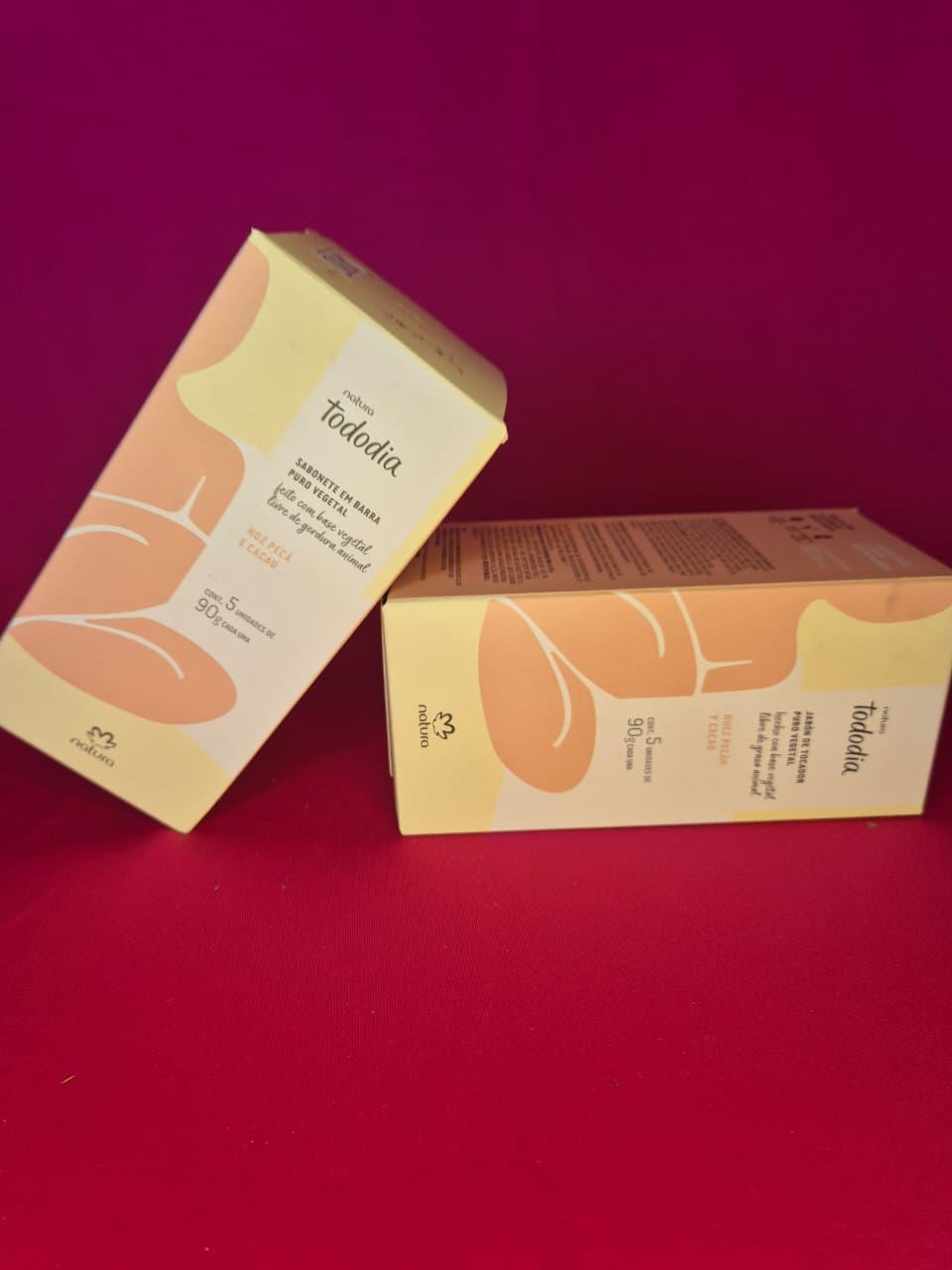 Sabonete em barra puro vegetal, Noz Pecã e Cacau, contém 5 unidades de 90g cada