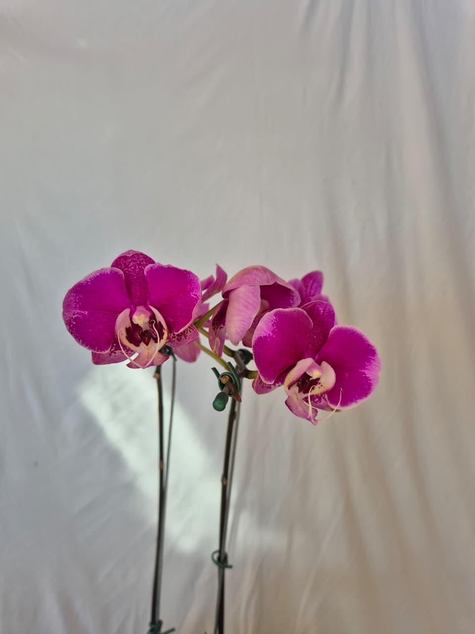 ORQUÍDEA PHALEAPONOSIS DUAS ASTES COM DECORAÇÃO DE POLIS E LAÇO