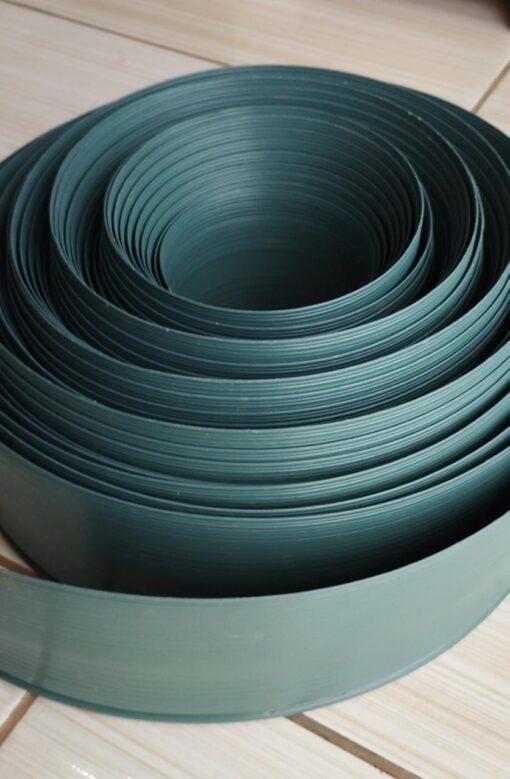 Limitador de grama com borda, com 11 cm de altura, na cor verde, e dividem diferentes tipos de solo, muito usado na jardinagem criando verdadeiras obras de arte., podendo ser usados em linhas retas, curvas ou arredondadas. podendo ser vendida peca fechada ou por metro.