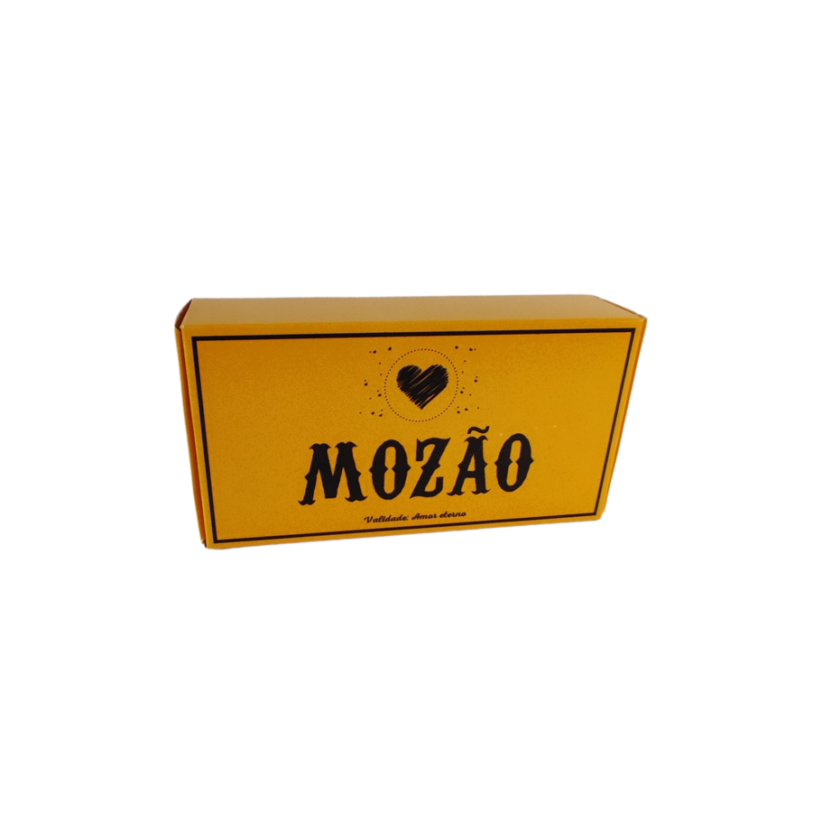 Caixa tipo practice, adequada para 8 doces, com a mensagem"Mozão", medindo 4 cmx 16 cmx8 cm