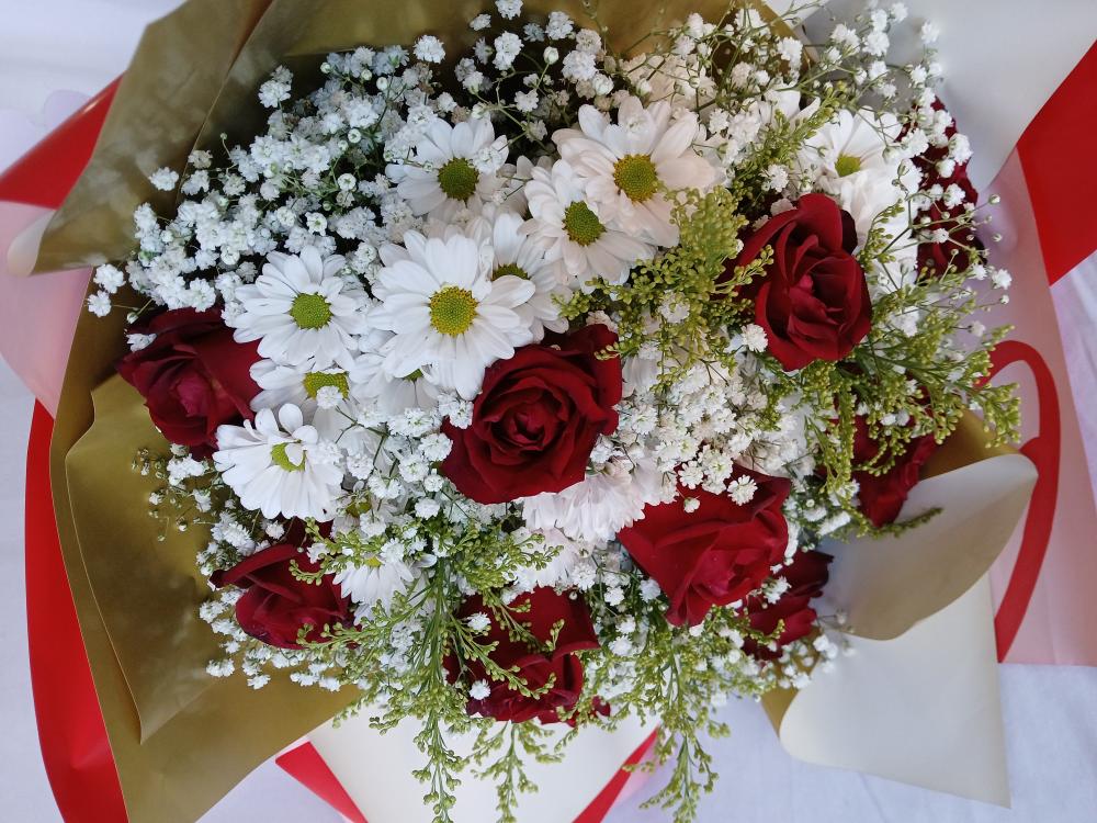 As rosas vermelhas são perfeitas para demonstrações de amor e paixão por alguém. essa representação fica ainda melhor se acompanhado de margaridas brancas, pois eles toda a pureza do sentimento.