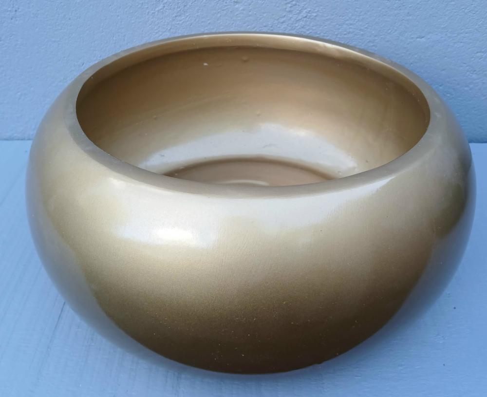 Essa é uma bacia dourada de cerâmica que irá complementar de forma perfeita seu ambiente deixando_o muito mais elegante. Confeccionado em cerâmica nobre, ele é indicado para vaso tipo cuia 21, caso queira usá-lo como cachepot, pois a mesma acompanha tampa de vedação de agua, confeccionada em silicone.