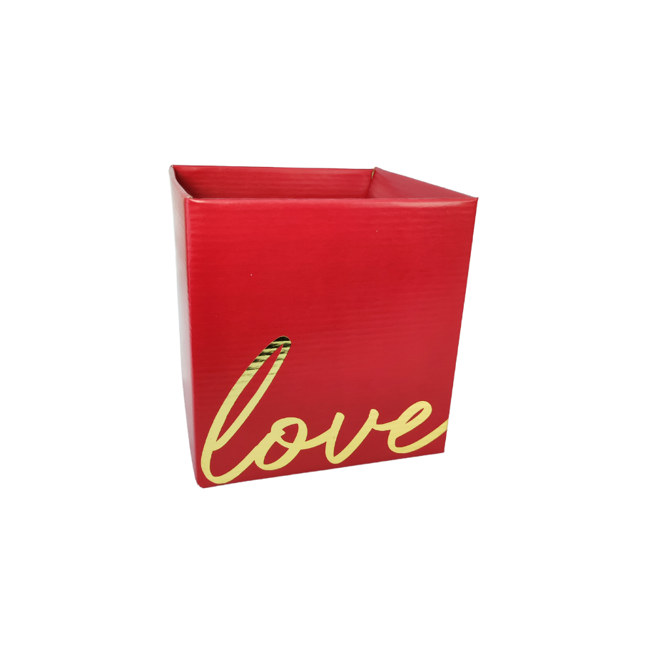 Cachepot quadrado passion Love, medindo 14,5 cm 14,5 cm, vermelho burgundy/ouro, confeccionado em papel dúplex mais papelão micro ondulado. Indicado para vaso tamanho 15.