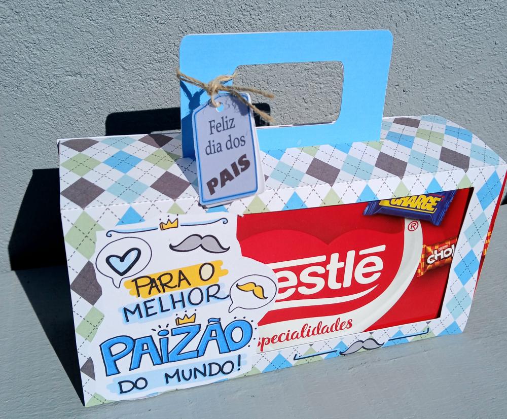 Caixa chocolate Nestlé com suporte de papel personalizada para o dia dos pais, com a sequinte frase" para o melhor paizão do mundo" é tag feliz dia dos pais.