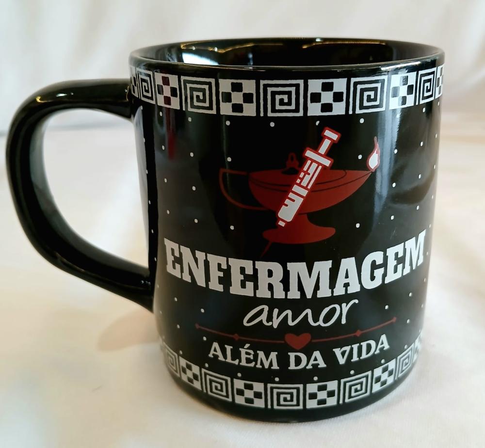 Caneca enfermagem, com a frase: "Enfermagem amor além da vida", com capacidade de 350 ml. Confeccionada em cerâmica, ideal para presentear alguém especial.