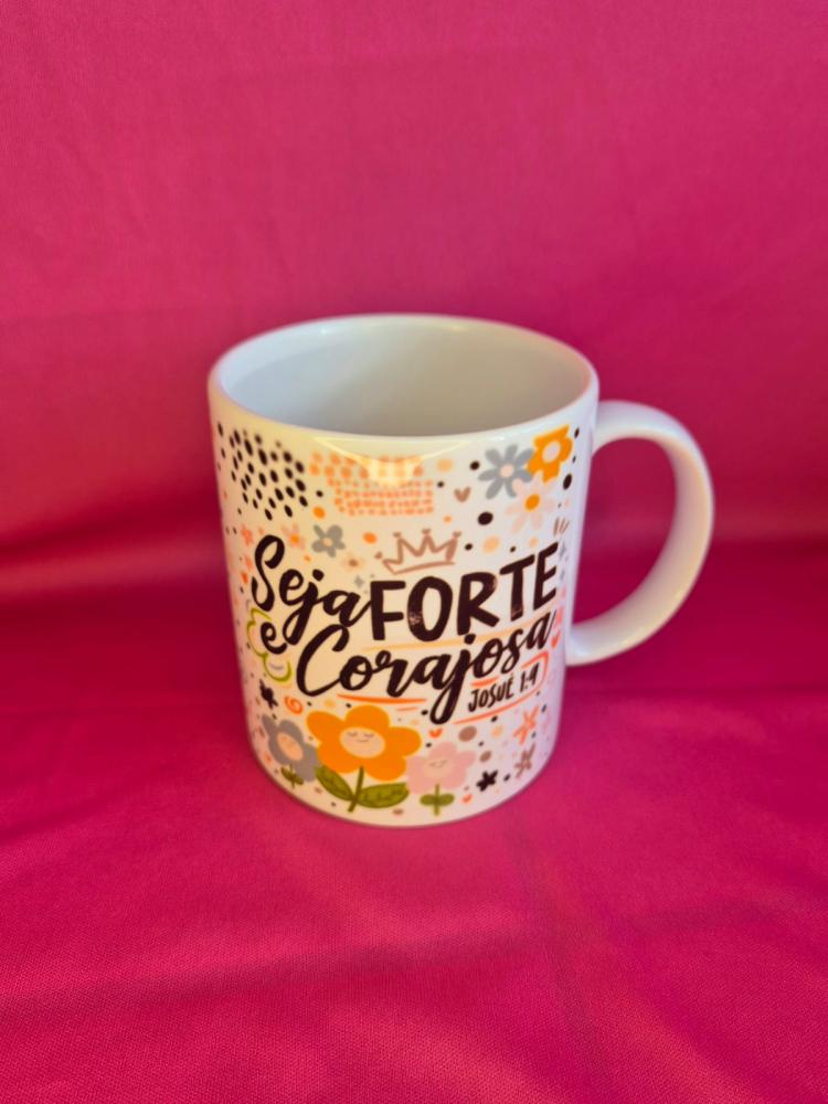 xicara medindo 300ML,com a seguinte frase: Seja forte e corajosa.