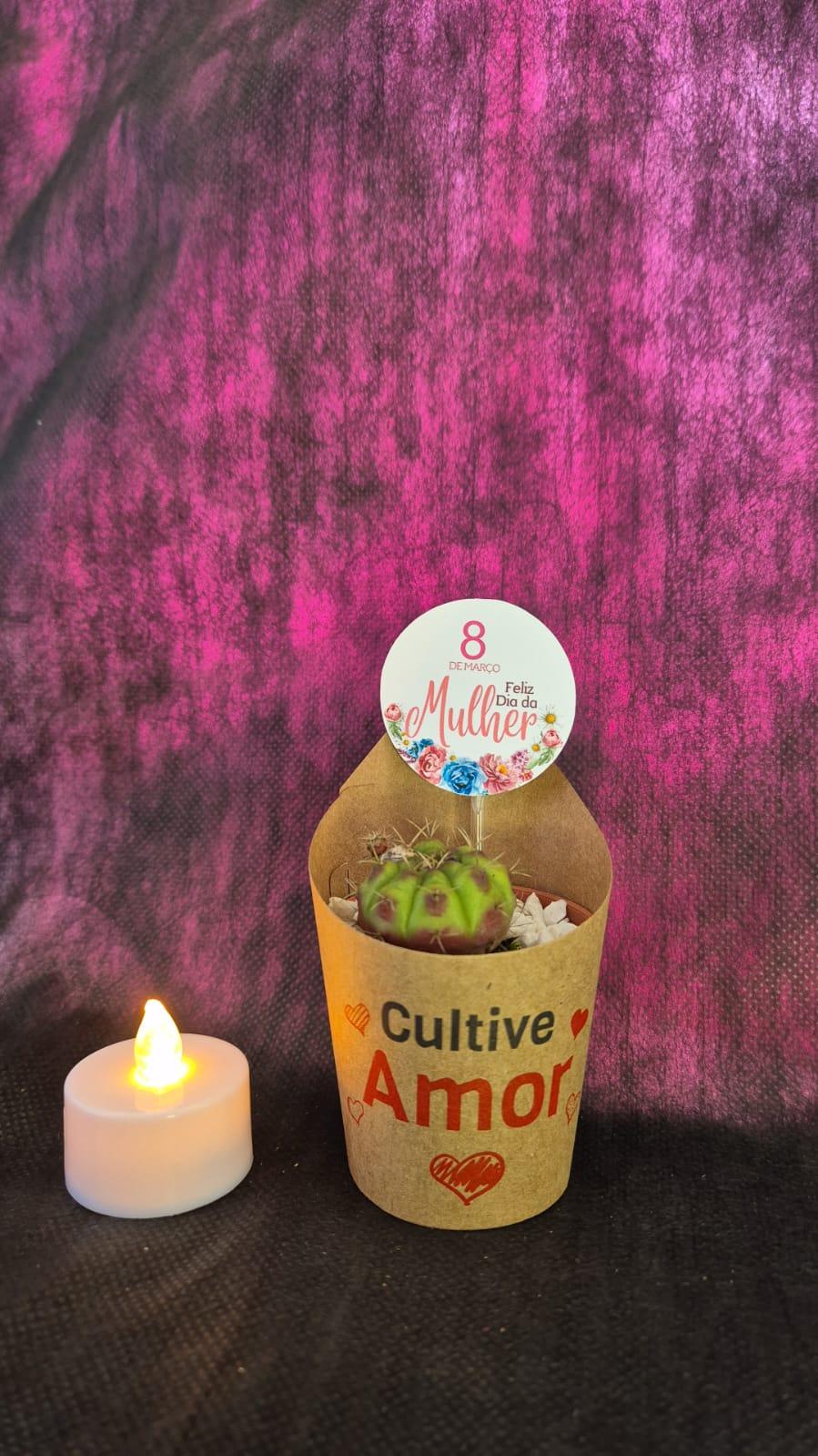 mini cacto plantado no pote 06,especies variados, já embalada em papel kraft com tag para o dia da mulher